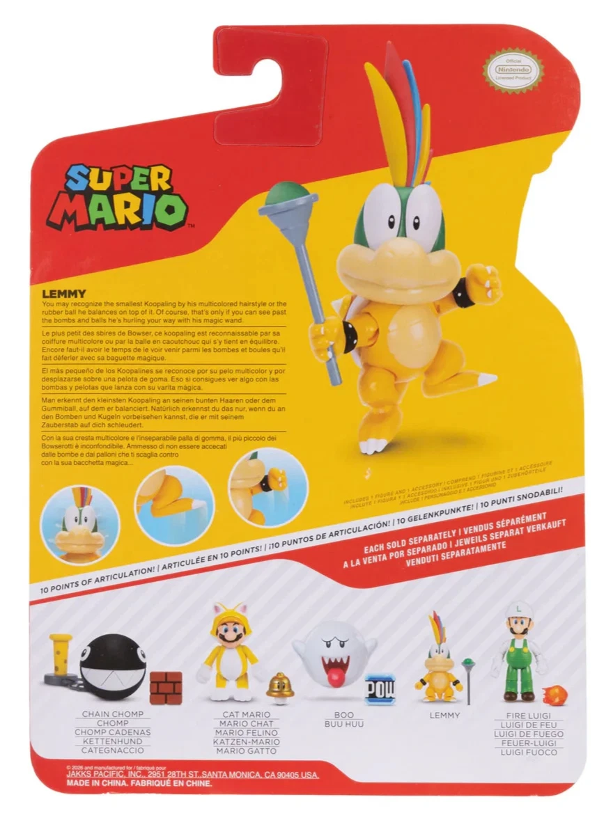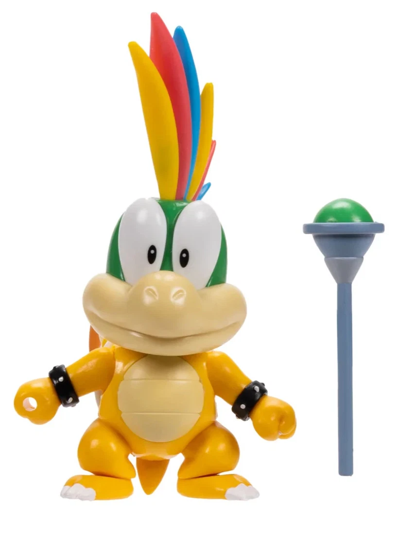 Official Super Mario Lemmy Koopa figure with magic wand accessory—perfect for Nintendo fans and collectors.