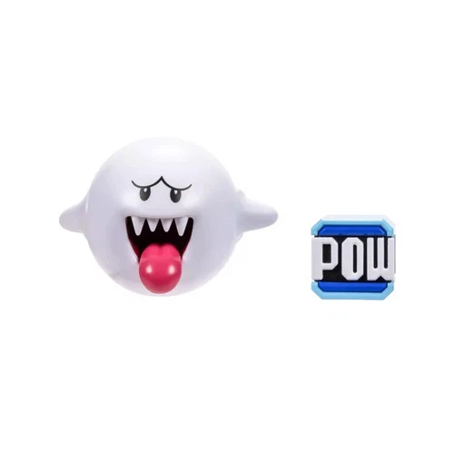 Official Super Mario Boo 4” figure from Wave 48 featuring a POW Block accessory—perfect for collectors and Nintendo fans.