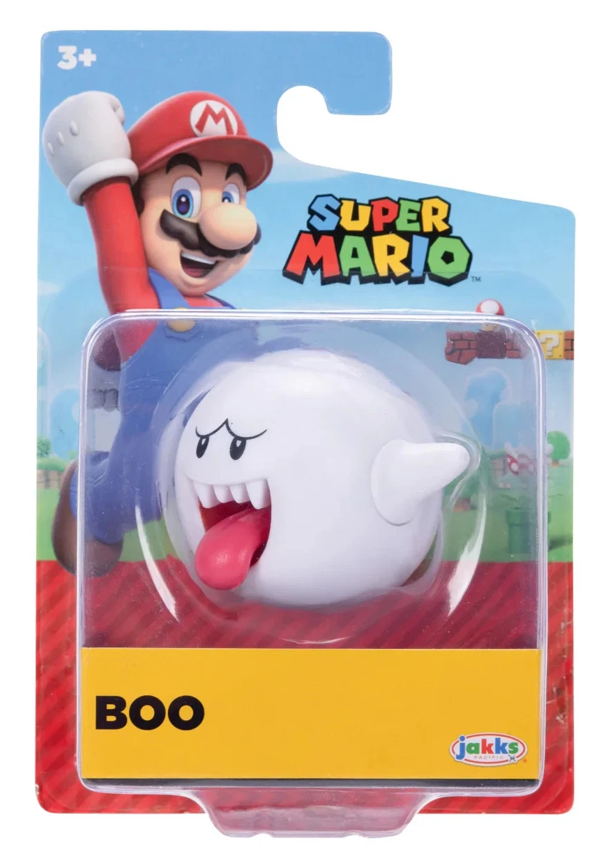 Official Super Mario Boo 4” figure from Wave 48 featuring a POW Block accessory—perfect for collectors and Nintendo fans.